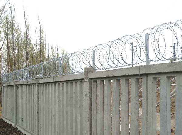 高鐵刺絲滾籠包含組建和材料。貨運鐵路刀片式刀刺滾籠是依據(jù)按照鐵路線路防護隔 離防護欄2012-8001圖集來加工拼裝的。下部是提防柵欄避免人群、動物、車輛穿越鐵路沿線。刺絲滾籠支架及固定抱箍等上鋅量需實現(xiàn)270g/㎡之上。圍網(wǎng)完成以后整體熱電鍍鋅熱浸塑。刺絲防備護欄選用上刺下欄的結(jié)構(gòu),防備防護欄頂部是刀刺滾籠降低防止人群攀爬、越過柵欄。整體熱冷鍍,上鋅量為270g/㎡。